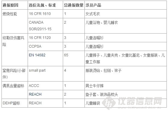 2014年12月份紡織及鞋類產(chǎn)品召回情況統(tǒng)計