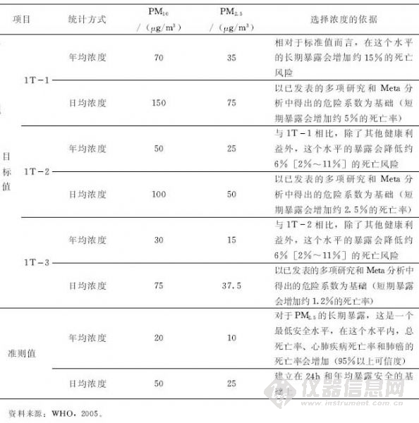 WHO制定的PM2.5準(zhǔn)則值和目標(biāo)值