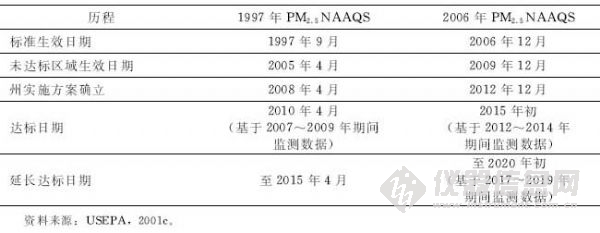 美國為達(dá)到PM2.5排放標(biāo)準(zhǔn)而制定的實(shí)施進(jìn)度