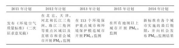 我國PM2.5環(huán)境空氣質(zhì)量標(biāo)準(zhǔn)的實(shí)施計(jì)劃