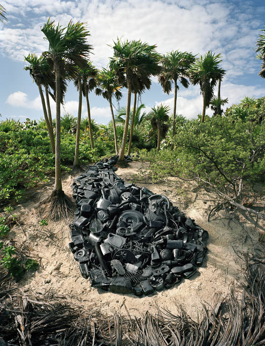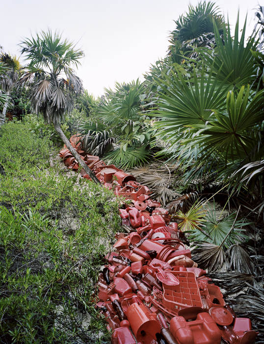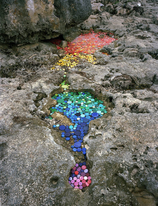 他的藝術(shù)項目“Washed Up: Transforming a Trashed Landscape”目前還在創(chuàng)作中,該項目以墨西哥最大的聯(lián)邦自然保護(hù)區(qū)圣卡安清麗的美景為背景,襯托出五顏六色又讓人看了心里不安的塑料垃圾(他從全世界收集來的)。