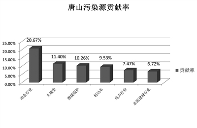 位于“京津唐城市群”的唐山是河北省最早啟動,也是最早完成PM2.5來源解析的城市,早在2012年就委托北京工業(yè)大學(xué)啟動了這一工作,一年多以后發(fā)布《唐山市PM2.5來源解析及優(yōu)化控制研究》。其中顯示,冶金行業(yè)是唐山市各功能區(qū)PM2.5的主要來源,全年平均貢獻(xiàn)率為20.67%;土壤塵為11.40%;燃煤鍋爐為10.26%;機(jī)動車為9.53%;電力行業(yè)為7.47%;水泥建材行業(yè)為6.72%;此外還有部分未知來源。