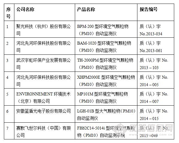近日,中國環(huán)境監(jiān)測總站發(fā)布環(huán)境空氣顆粒物(PM10)連續(xù)監(jiān)測系統(tǒng)適用性檢測合格產(chǎn)品名錄(截止2015年7月1日)。此次名錄共包括6家廠商的7臺儀器,其中僅包含2臺進(jìn)口儀器。