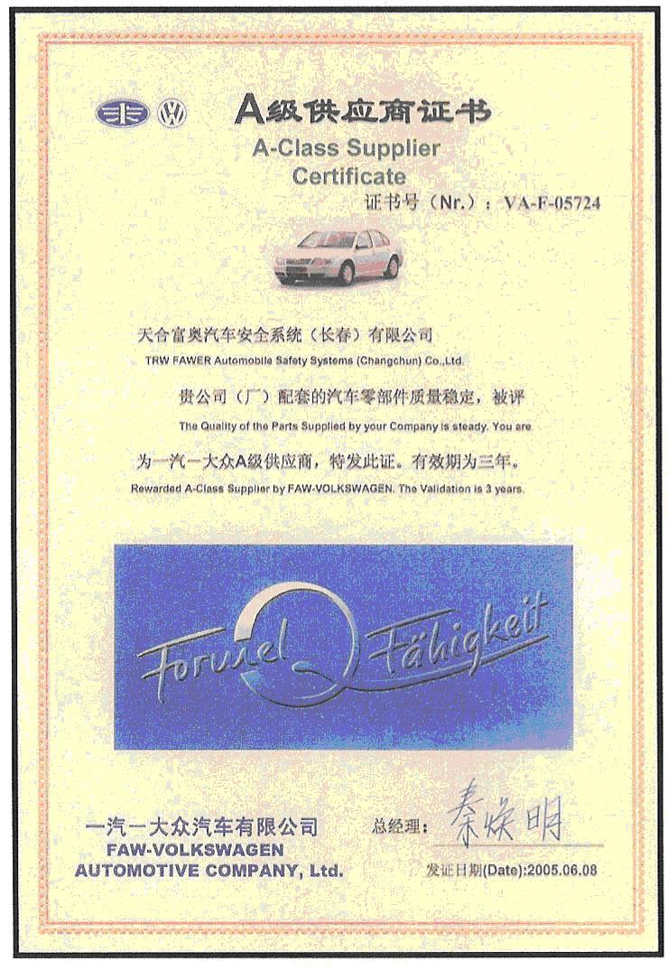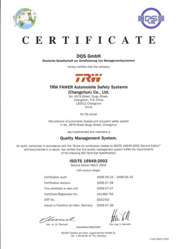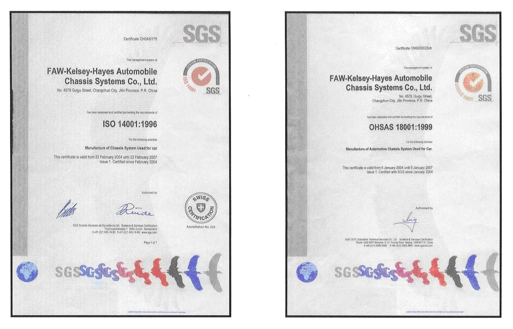公司通過(guò)VDA6.1、TS16949、ISO14001、OHSAS18001等質(zhì)量、安全、健康、環(huán)境體系認(rèn)證。