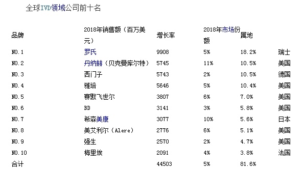 一是:全球十大IVD巨頭企業(yè)中歐美占九席之多,而美國獨(dú)占六席