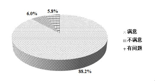 本次考核總體情況見表1,考核結(jié)果分布圖見圖1。在收回的364份有效結(jié)果中,考核結(jié)果為“滿意”的單位為321家,占88.2%?! ?/p>