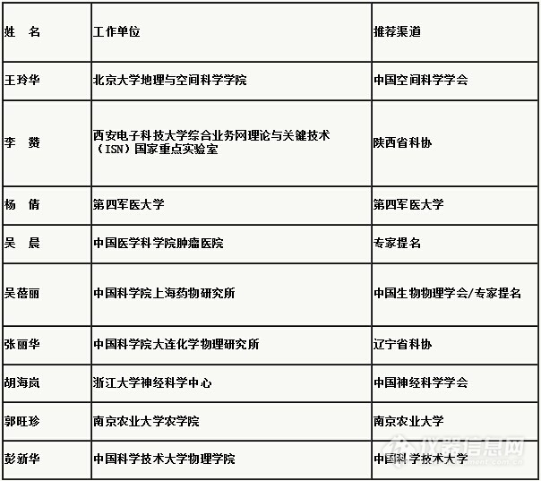 第十二屆中國青年女科學(xué)家獎入選者名單