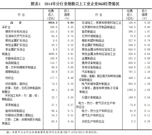 2014年全國科技經(jīng)費投入統(tǒng)計公報