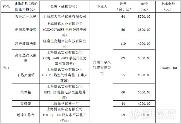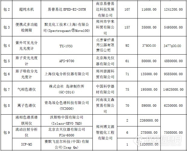 (河南省農(nóng)村飲水安全區(qū)域水質檢測中心儀器設備采購)