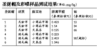 分析:廣東省檢驗檢疫中心相關負責人表示,目前,針對玩具的國家標準并無甲醛含量限制。但他表示圣誕帽可適當參考紡織產(chǎn)品國家標準中對游離甲醛的限量要求。