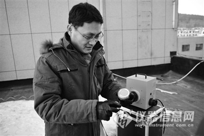 圖為環(huán)境保護部核與輻射安全中心一線監(jiān)測人員正在檢查采樣儀器