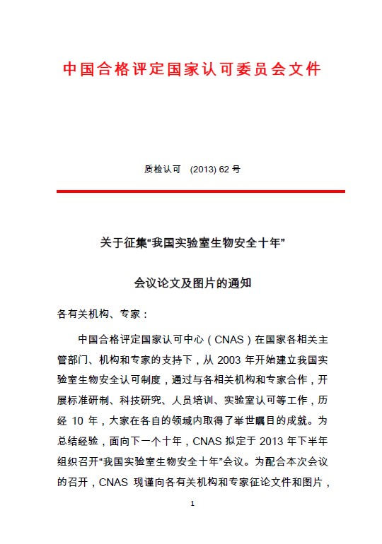 【轉(zhuǎn)】關(guān)于征集“我國(guó)實(shí)驗(yàn)室生物安全十年”會(huì)議論文及圖片的通知