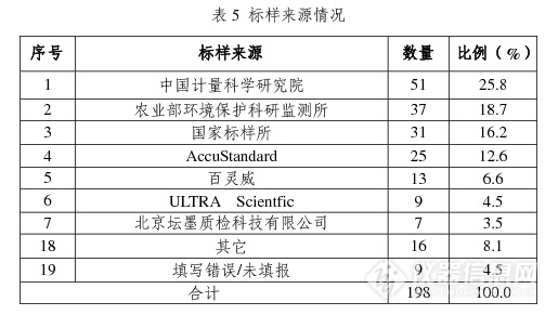各單位采用標(biāo)樣來(lái)源情況如下: