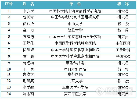 “精準(zhǔn)醫(yī)學(xué)研究”重點(diǎn)專(zhuān)項(xiàng)2016年項(xiàng)目指南編制專(zhuān)家名單