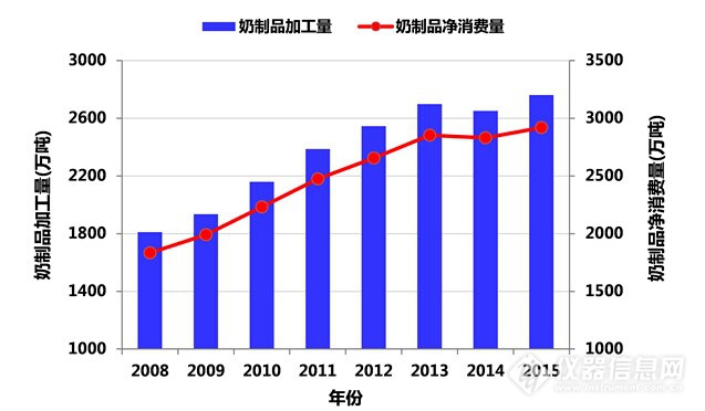 據(jù)統(tǒng)計,2015年奶制品加工量2761.1萬噸(預計數(shù)),比前一年2651.8萬噸增長4.1%;奶制品凈消費量2919.6萬噸(預計數(shù)),比2014年2829.1萬噸增長3.2%。