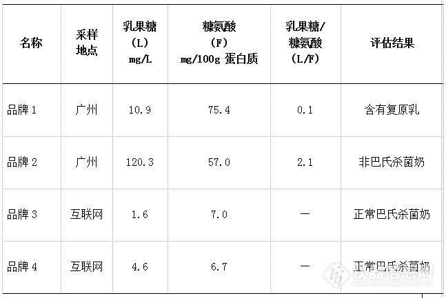 進口品牌巴氏殺菌奶中乳果糖與糠氨酸含量