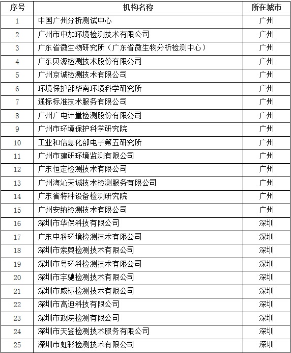 廣東省環(huán)境保護廳官方網站近日對政府購買環(huán)境檢測服務機構名單(第一批)進行了公示,共有53家檢測機構進入名單。其中,綜合類機構37家、氣專項機構6家、水專項機構5家、固體專項機構5家(詳細名單見后文)。