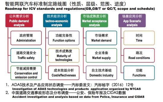 據(jù)了解,國(guó)家對(duì)“智能網(wǎng)聯(lián)汽車”的總體規(guī)劃始于2014年10月。當(dāng)時(shí),工信部委托中國(guó)汽車工業(yè)協(xié)會(huì)、中國(guó)汽車工程協(xié)會(huì)、全國(guó)汽車標(biāo)準(zhǔn)化技術(shù)委員會(huì)(以下簡(jiǎn)稱“汽標(biāo)委”)分工展開研究。其中,中國(guó)汽車工程協(xié)會(huì)負(fù)責(zé)技術(shù)路線圖的制定;而汽標(biāo)委則負(fù)責(zé)標(biāo)準(zhǔn)體系的規(guī)劃。