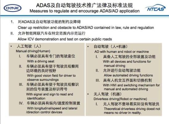 知情人士稱,前段時(shí)間,汽標(biāo)委組織開展了對(duì)汽車及相關(guān)行業(yè)的國(guó)家層面及部門法律法規(guī)的梳理,目前這一工作基本完成。接下里的任務(wù)是首先分析過去這些法律法規(guī)對(duì)ADAS及自動(dòng)駕駛可能產(chǎn)生的制約。隨后,會(huì)在國(guó)家允許的情況下,對(duì)ADAS在特定范圍、特定區(qū)域內(nèi)進(jìn)行驗(yàn)證。此外,自動(dòng)駕駛汽車及智能網(wǎng)聯(lián)汽車使用的公共道路管理文件,也正由汽標(biāo)委牽頭開展。
