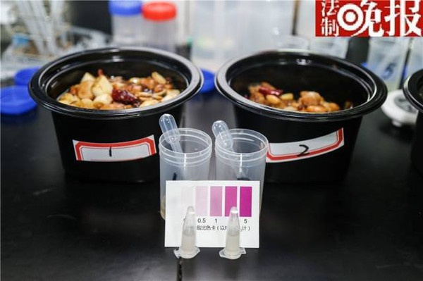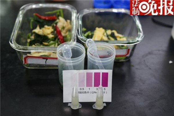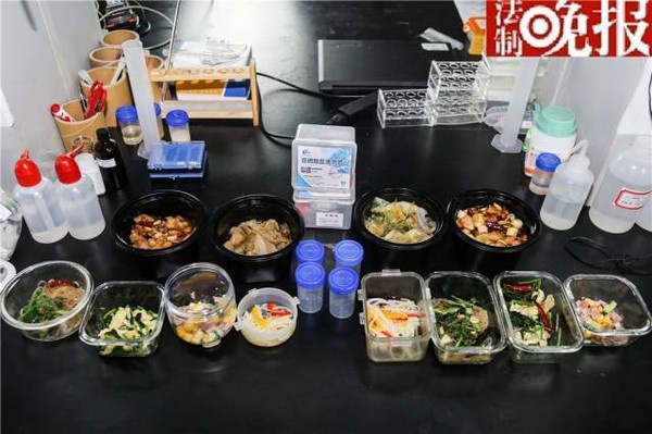 《法制晚報(bào)》記者在7月27日晚和28日上午,分別自制了3份對(duì)照樣品炒菜及一份沙拉,并從飯店訂購(gòu)了兩個(gè)對(duì)照樣品的炒菜(27日的炒菜樣品均放置于冰箱儲(chǔ)存),并將6個(gè)對(duì)照組的炒菜樣品送經(jīng)北京智云達(dá)食品安全檢測(cè)中心檢測(cè)。