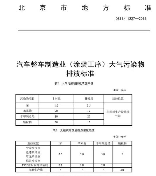 北京市汽車涂裝行業(yè)VOCs排放標(biāo)準(zhǔn)