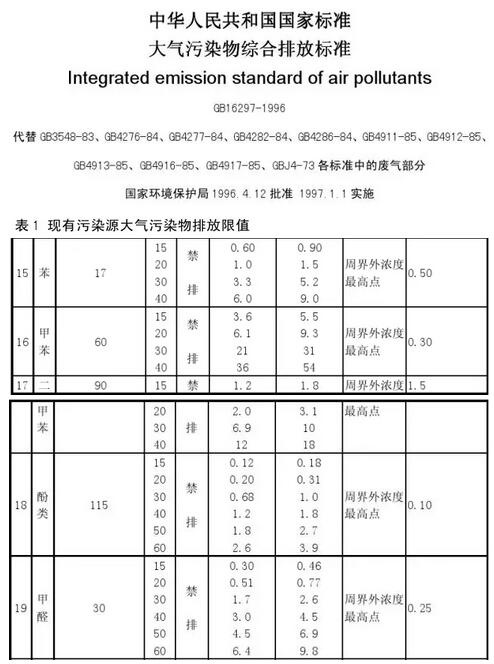 國家大氣污染物排放標(biāo)準(zhǔn)、限值及惡臭排放標(biāo)準(zhǔn)