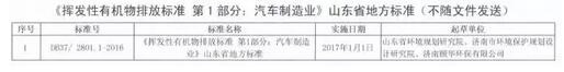 山東省汽車涂裝行業(yè)VOCs排放標(biāo)準(zhǔn)