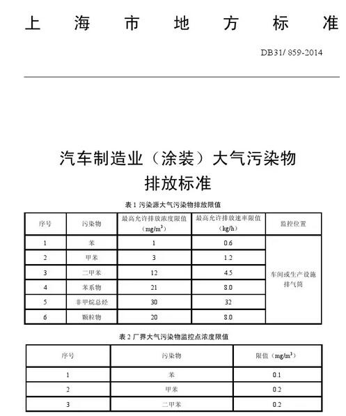 上海市汽車涂裝行業(yè)VOCs排放標(biāo)準(zhǔn)