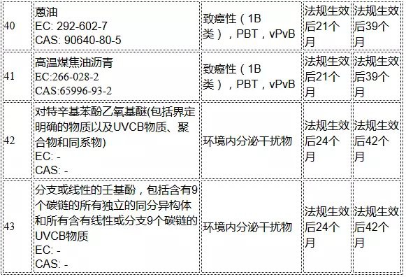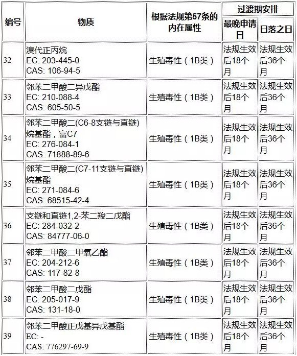 根據(jù)該草案,擬在REACH法規(guī)附件XIV中新增如下物質(zhì):