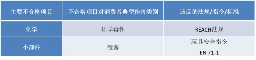 表3:2016年第三季度歐盟(中國(guó)制造)通報(bào)的玩具產(chǎn)品的不合格詳情