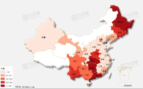 圖1:2016年第三季度中國(guó)不合格產(chǎn)品的通報(bào)區(qū)域分布