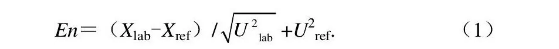 式 (1) 中:Xlab為參加實驗室的測量結(jié)果;Xref為參考值;Ulab為參加實驗室測量結(jié)果的擴展不確定度;Uref為參考值的擴展不確定度。