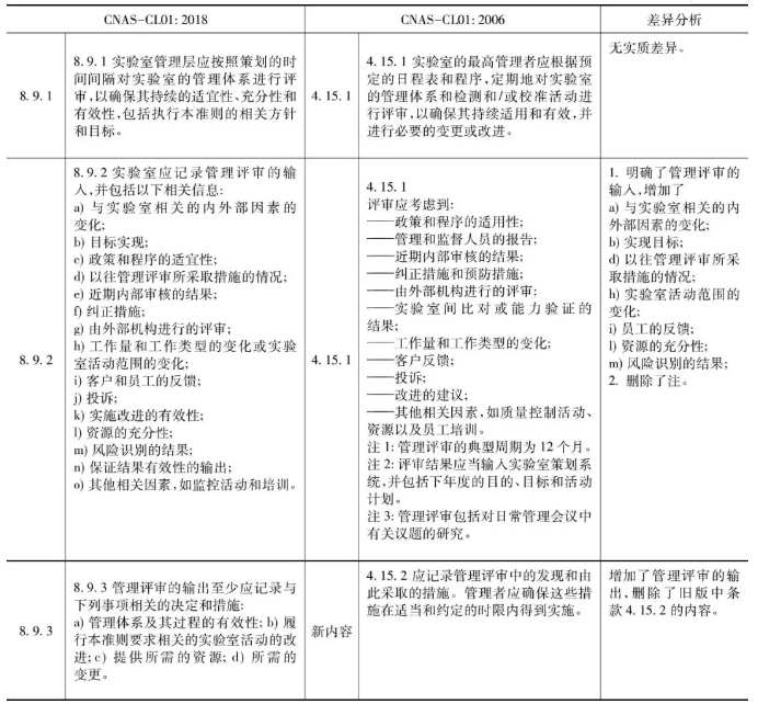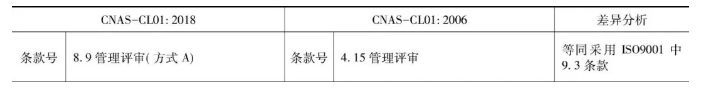 表1 CNAS-CL01新舊版管理評審要素差異比較表