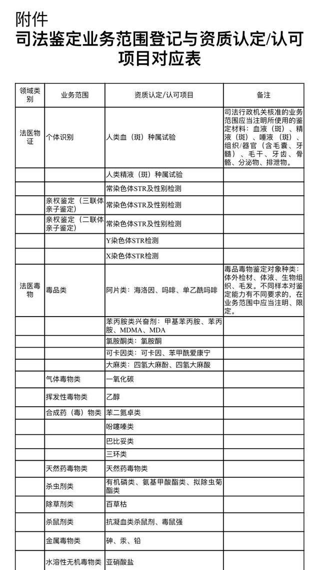 附件:司法鑒定業(yè)務(wù)范圍登記與資質(zhì)認(rèn)定/認(rèn)可項(xiàng)目對(duì)應(yīng)表