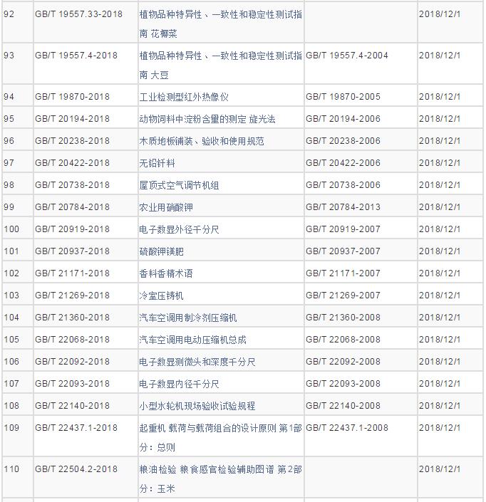 本月起,這些國(guó)家標(biāo)準(zhǔn)正式實(shí)施!按照慣例,小編整理了一份12月1日起實(shí)施的國(guó)家標(biāo)準(zhǔn)清單,供各位質(zhì)量人參閱。
