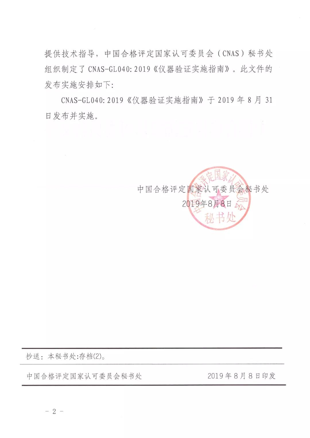 關(guān)于發(fā)布CNAS-GL040:2019《儀器驗(yàn)證實(shí)施指南》及其實(shí)施安排的通知