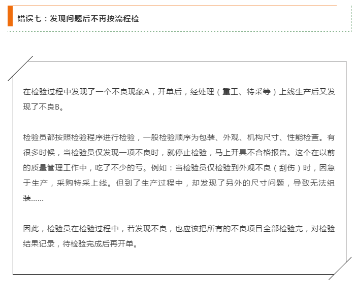 最常見的問題往往也是最難改正的問題,也成為犯錯后推卸責(zé)任的常用借口。以下8個問題是我們在質(zhì)量管理當(dāng)中常碰到的事情。當(dāng)以下錯誤不再出現(xiàn),至少說明內(nèi)部做好了,做到位了。