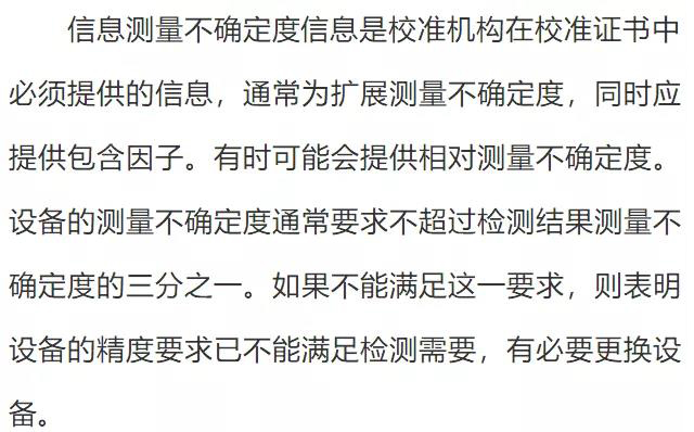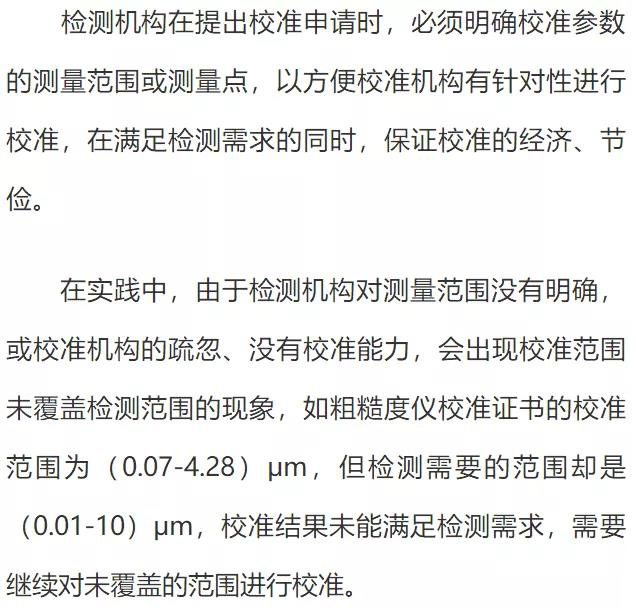 有時還可以從產品標準中規(guī)定的極限值等要求中獲取。這是開展校準結果確認的關鍵環(huán)節(jié)。許多檢測人員往往是不會識別或難于識別設備的預期使用要求而使這一工作沒能做到位。