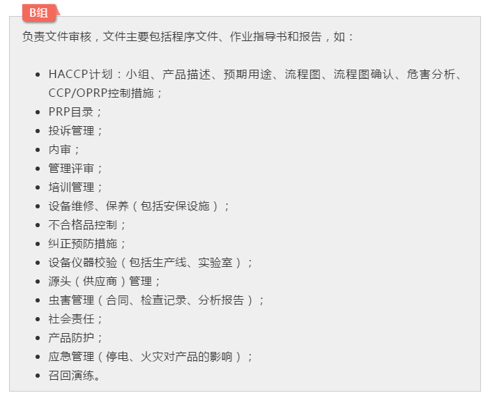 B組審核員在看以上(不僅僅限于以上)管理程序時(shí),需要提醒C組的審核員,協(xié)助在現(xiàn)場(chǎng)提供證據(jù)。