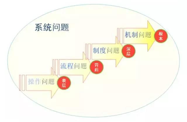 針對(duì)操作性問(wèn)題,找流程本身的問(wèn)題。如果解決了責(zé)任和方法,但仍然解決不了問(wèn)題的重復(fù)發(fā)生,那可能就是制度問(wèn)題了。而制度問(wèn)題往往與機(jī)制設(shè)計(jì)相關(guān),到這個(gè)層次基本上就能夠判斷企業(yè)的系統(tǒng)風(fēng)險(xiǎn)管理水平了。
