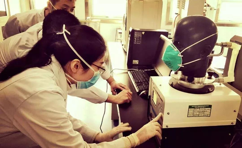 圖為檢測人員進(jìn)行口罩產(chǎn)品檢測