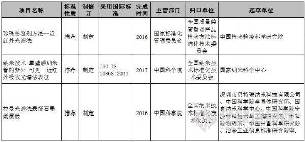 日前,國家標(biāo)準(zhǔn)委發(fā)布了2014年第一批國家標(biāo)準(zhǔn)制修訂計(jì)劃的通知。其中采用了分子光譜方法的標(biāo)準(zhǔn)有3項(xiàng),分別是:《珍珠粉鑒別方法--近紅外光譜法》、《納米技術(shù) 單壁碳納米管的紫外 可見 近紅外吸收光譜法表征》、《拉曼光譜法表征石墨烯層數(shù)》。