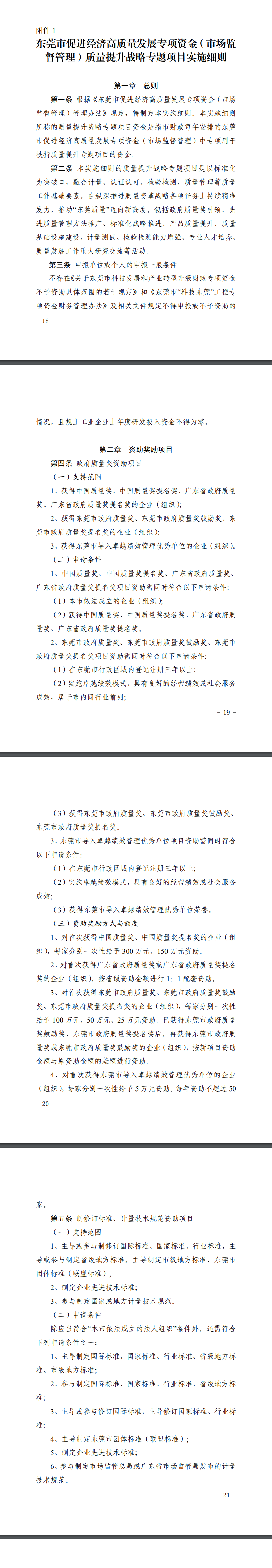《東莞市促進(jìn)經(jīng)濟(jì)高質(zhì)量發(fā)展專項(xiàng)資金(市場(chǎng)監(jiān)督管理)質(zhì)量提升戰(zhàn)略專題項(xiàng)目實(shí)施細(xì)則》全文如下: