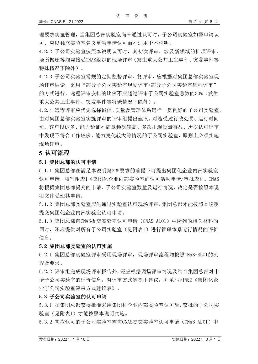 認(rèn)可規(guī)范文件CNAS-EL-21:2022《集團(tuán)化企業(yè)內(nèi)部實(shí)驗(yàn)室認(rèn)可說(shuō)明(試行)》已于今年1月正式發(fā)布實(shí)施,該文件適用于 CNAS 對(duì)申請(qǐng)或維持集團(tuán)化企業(yè)內(nèi)部實(shí)驗(yàn)室的認(rèn)可活動(dòng)。