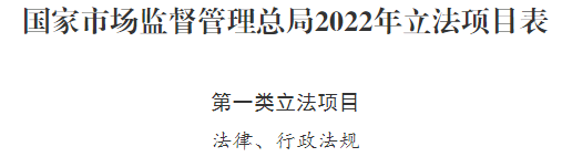 國家市場(chǎng)監(jiān)督管理總局2022年立法工作計(jì)劃