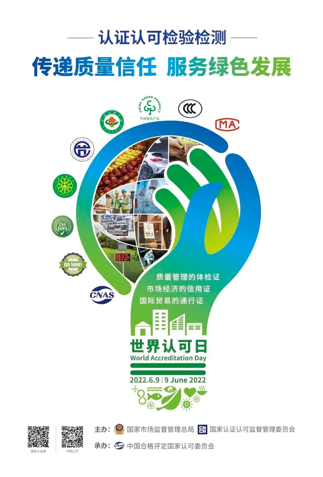 為了大力宣傳認(rèn)證認(rèn)可檢驗(yàn)檢測(cè)服務(wù)綠色發(fā)展的積極成效,進(jìn)一步推動(dòng)其廣泛應(yīng)用,為實(shí)現(xiàn)“碳達(dá)峰碳中和”目標(biāo)、推動(dòng)經(jīng)濟(jì)社會(huì)發(fā)展全面綠色轉(zhuǎn)型提供有力支撐,我國(guó)將“認(rèn)證認(rèn)可檢驗(yàn)檢測(cè):傳遞質(zhì)量信任,服務(wù)綠色發(fā)展”作為2022年世界認(rèn)可日的國(guó)內(nèi)主題,組織開(kāi)展一系列宣傳活動(dòng)。