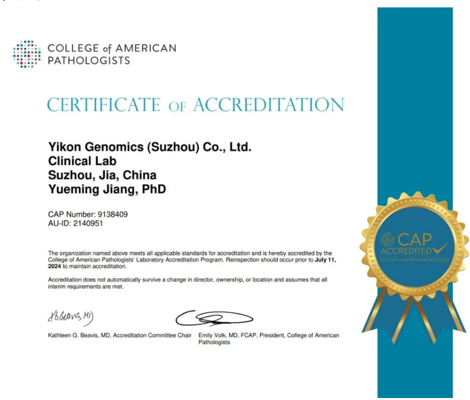 近日,蘇州億康醫(yī)學檢驗實驗室通過病理學家協(xié)會(College of American Pathologists,CAP)認證。