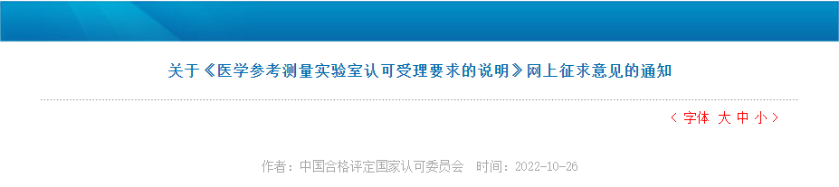 中國(guó)合格評(píng)定國(guó)家認(rèn)可委員會(huì)(CNAS)組織制定了CNAS-EL-XX:2022《醫(yī)學(xué)參考測(cè)量實(shí)驗(yàn)室認(rèn)可受理要求的說明》。目前已完成文件征求意見稿,現(xiàn)于網(wǎng)上公示征求意見。