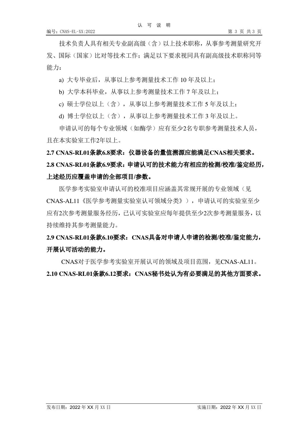 附件2:CNAS-EL-XX:2022《醫(yī)學(xué)參考測(cè)量實(shí)驗(yàn)室認(rèn)可受理要求的說明》編制說明