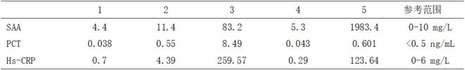 8、查看與其他炎癥指標(biāo)的吻合情況:隨機選取同月份5名患者同一天SAA與PCT、超敏CRP的聯(lián)動情況,符合患者病情變化。